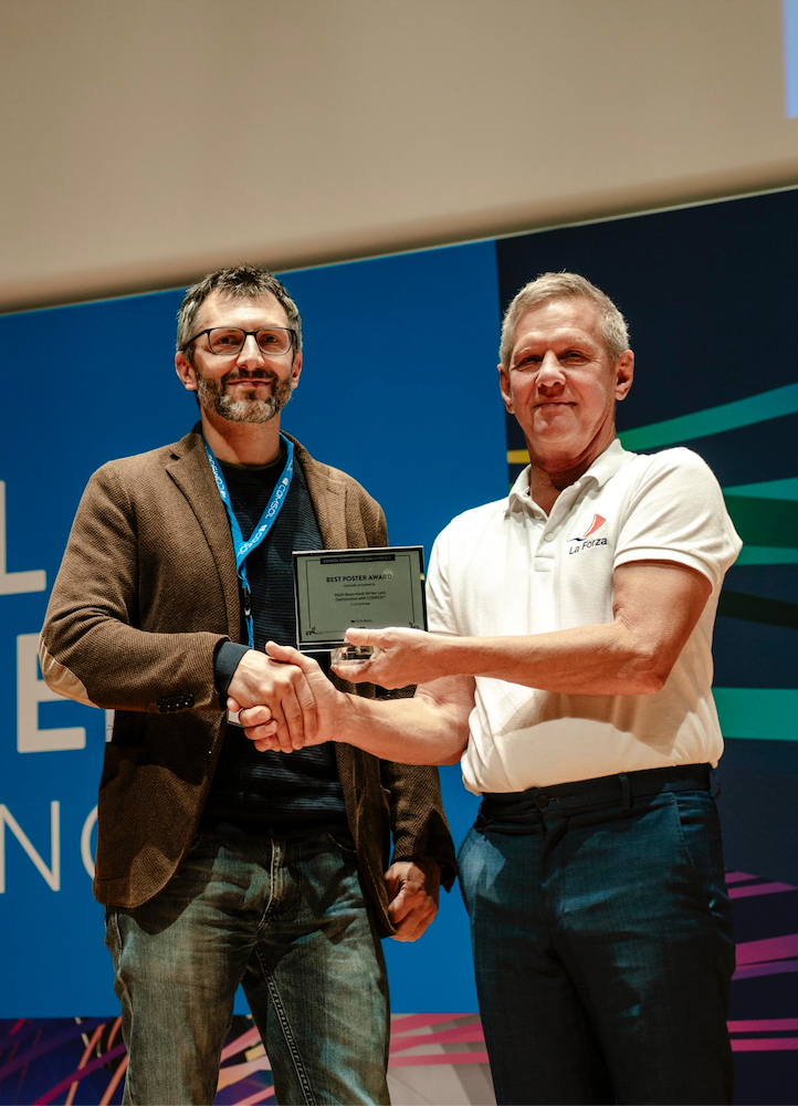 Giovanni Betti Beneventi receiving a Best Paper award onstage.